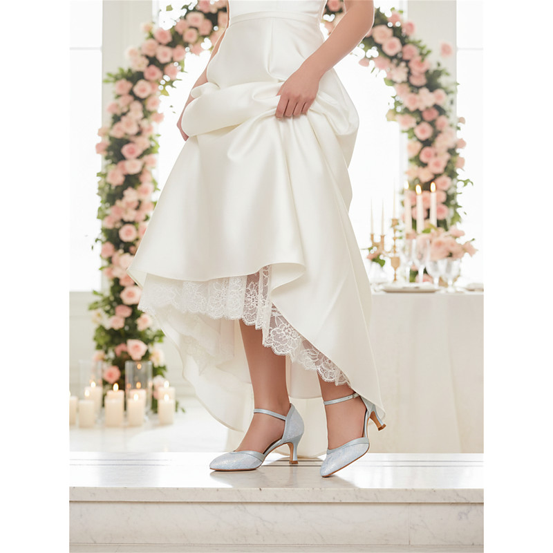 Women's Light Blue Lace Pointed Toe Heels – Elegant Romantic Style, Comfortable Kitten Heels for City Weddings and Modern Brides