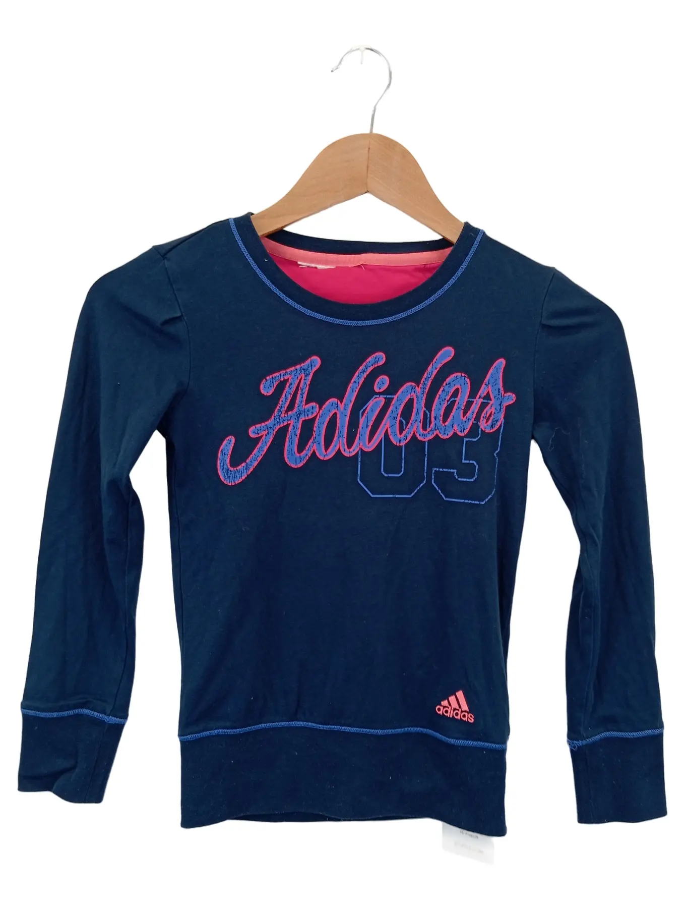 ADIDAS Kinder Langarmshirt Dunkelblau Sportlich Gr. 128 Top Zustand