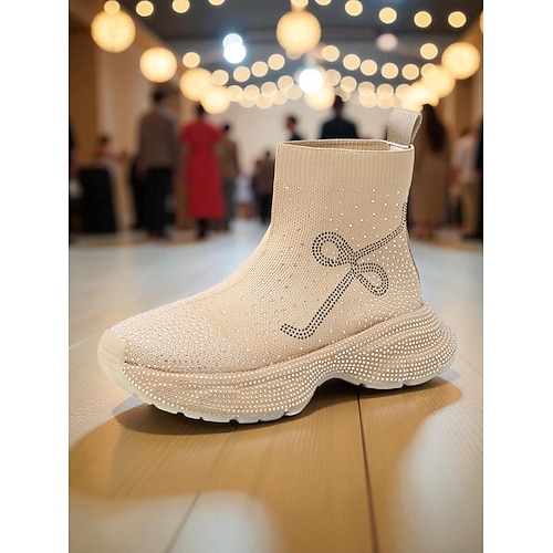 Goldene Glitzer-Sneaker für Damen – funkelnde Strick-Plateau-Stiefeletten mit Strasssohle für Club-, Bühnen- und Party-Outfits