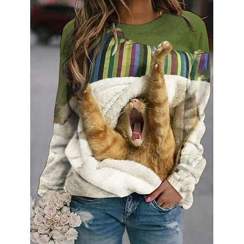 Per donna Felpa Pullover Grafico Animale Moda Casual Manica Lunga Girocollo Top Regolari Streetwear Abbigliamento Quotidiano Casuale Stampato Blu Verde Beige Autunno Inverno