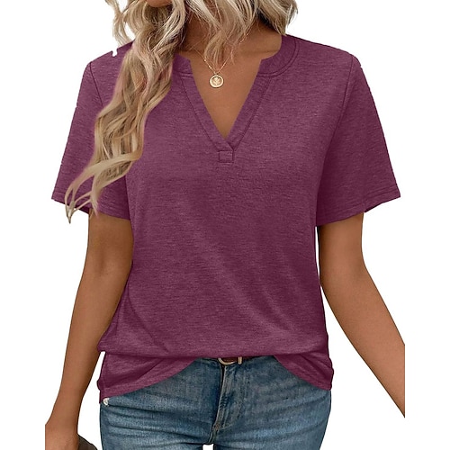 Per donna Maglietta Semplice Moda Classico Casual Manica Corta Scollo a V Top Regolari Quotidiano Uscire Weekend Nero Bianco Rosa Viola Verde Estate Primavera