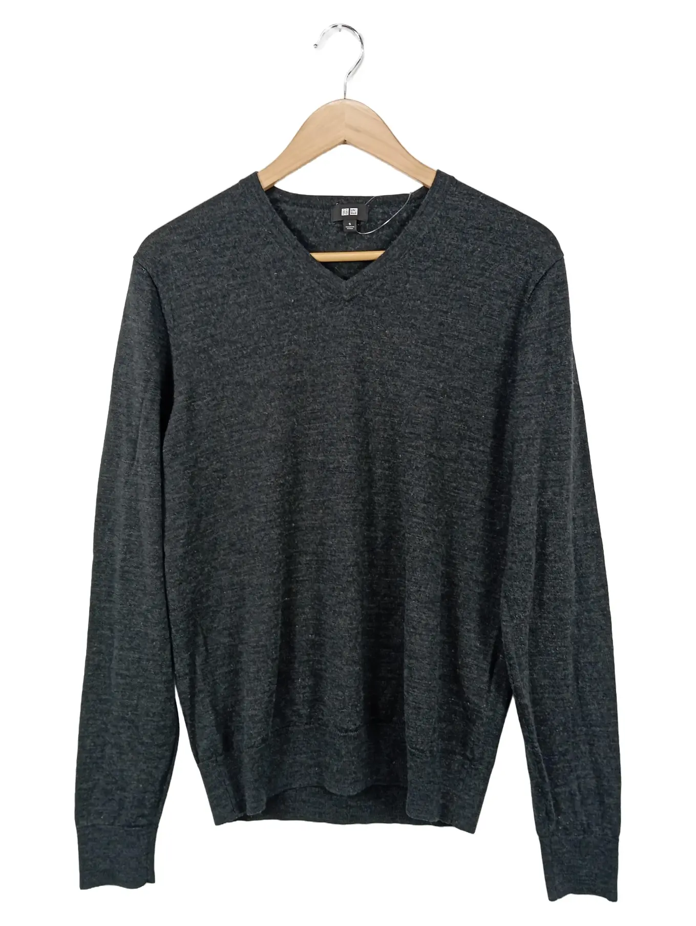 UNIQLO Herren Pullover S Grau 100% Wolle Casual Basic