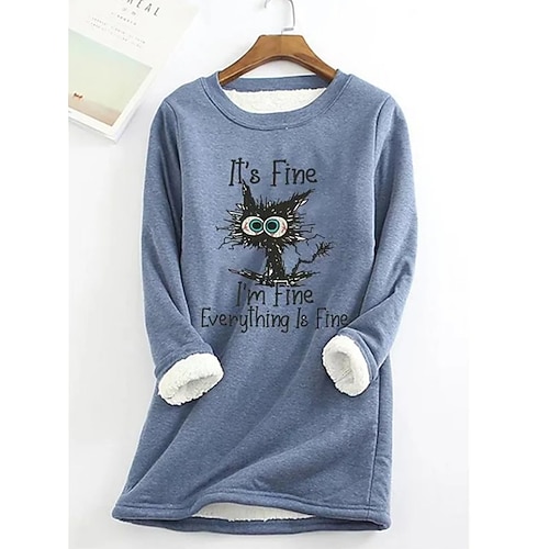 Per donna Felpa Pullover Grafico Lettera Caldo Casual Morbido Manica Lunga Girocollo Top lunghi Streetwear Casuale Rosa chiaro Nero Blu Grigio Primavera Autunno Inverno