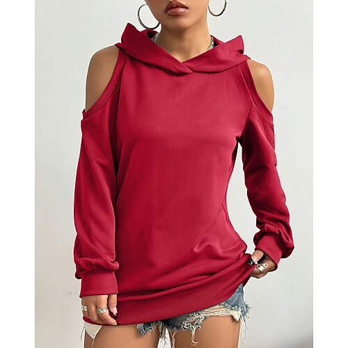 Per donna Felpa con cappuccio Semplice Moda Casual Manica Lunga Con Cappuccio Top Regolari Streetwear Abbigliamento Quotidiano Patchwork Nero Bianco Rosso Grigio Autunno Inverno