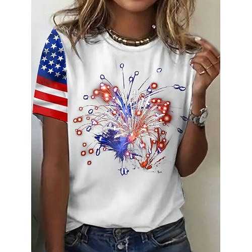 Giorno dell'Indipendenza Americana Per donna Maglietta Grafico Bandiera Bandiera Americana Vintage Elegante Classico Manica Corta Girocollo Top Regolari Quotidiano Weekend Stampato Blu Nero Bianco