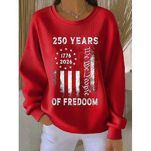 Giorno dell'Indipendenza Americana Per donna Maglietta Grafico Bandiera Americana Vintage Elegante Classico Manica Corta Girocollo Top Regolari Quotidiano Weekend Stampato Nero Bianco Estate Primavera