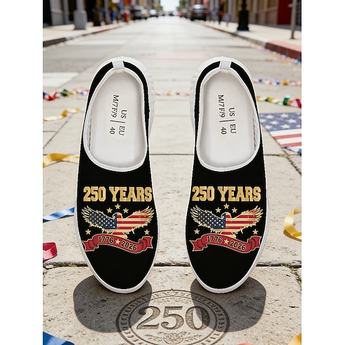 Stati Uniti 250° Anniversario Scarpe Slip-On Ampie Stampate da Donna USA - Scarpe da Passeggio Leggere Stile Urbana Casual Patriottico per Moda da Strada Festival Viaggi e Uso Quotidiano