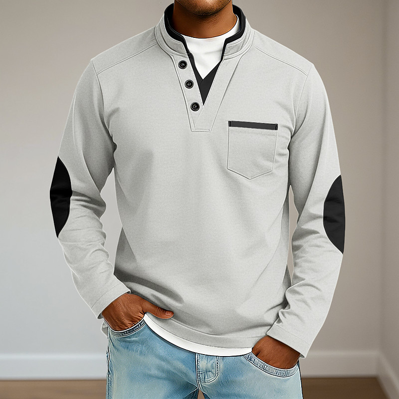 Men V Neck Tee Tee Top Long Sleeve Shirt Shirts With Elbow Patches Long Sleeve V Neck Stand Collar Summer All Seasons Patchwork Daily Casual Street Style Fashion Fake two piece Outdoor Street Causal