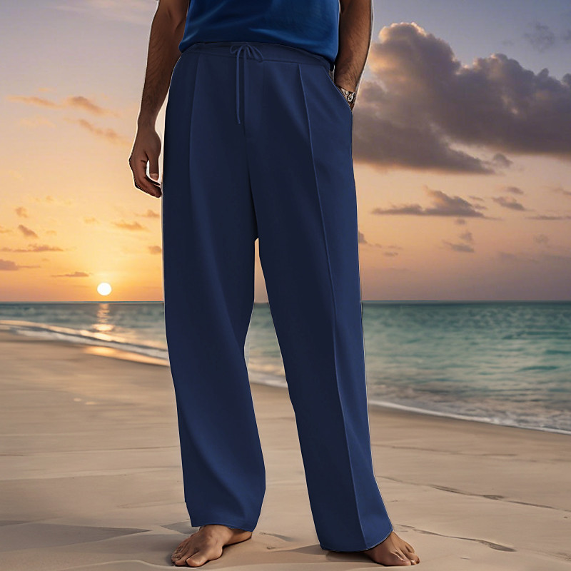 Men's Cotton Pants Drawstring Pocket Elastic Waist Plain Comfort Breathable Vacation Hawaiian Boho Black White