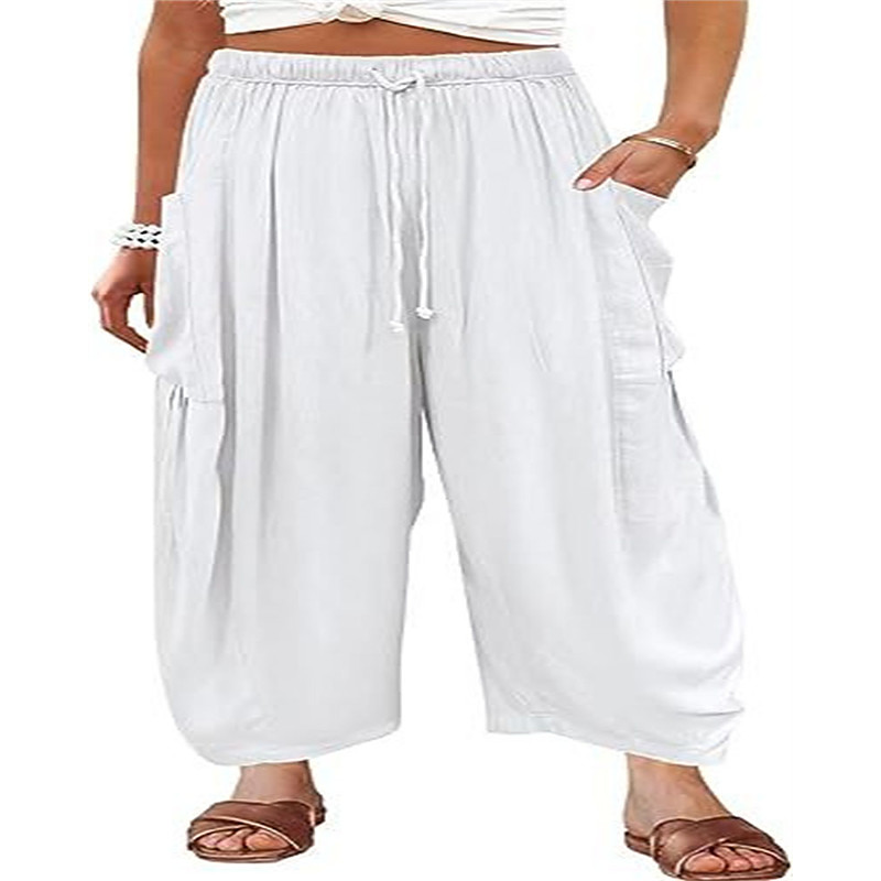 Men's Shorts Linen Shorts Summer Shorts Beach Shorts Capri Pants Pocket Drawstring Elastic Waist Plain Comfort Breathable Calf-Length Outdoor Home Daily Fashion Classic Style Black White