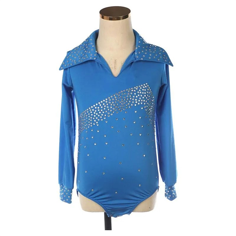 Figure Skating Top Men's Boys' Ice Skating Tops Blue Patchwork Spandex High Elasticity Training Competition Skating Wear Classic Crystal / Rhinestone Long Sleeve Ice Skating Figure Skating