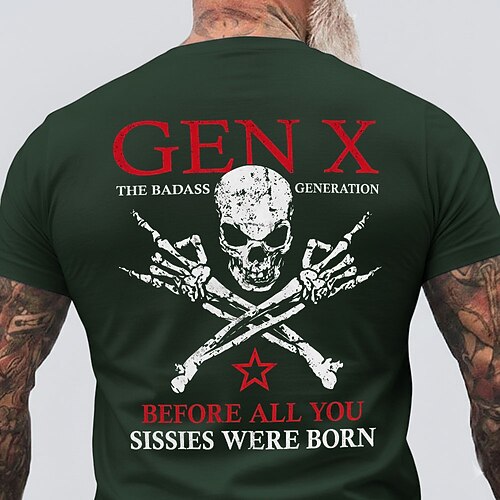 Herren Gen X – die coole Generation, bevor ihr alle Weicheier geboren wurdet – Totenkopf, gekreuzte Skeletthände, roter Stern, Vintage-Look, Used-Look, T-Shirt mit Grafikprint, Rundhalsausschnitt,