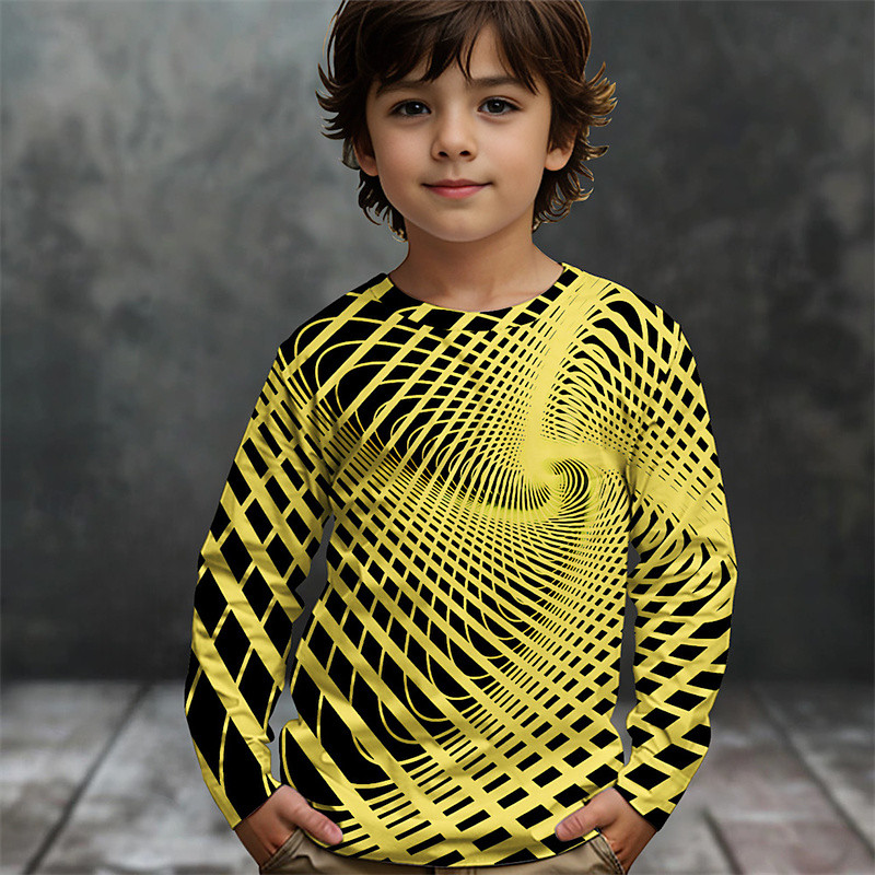 Boys' 3D Graphic Geometric T shirt Tee Long Sleeve Spring Fall Fashion Basic Kids 4-12 Years Crew Neck Outdoor Casual Daily Regular Fit