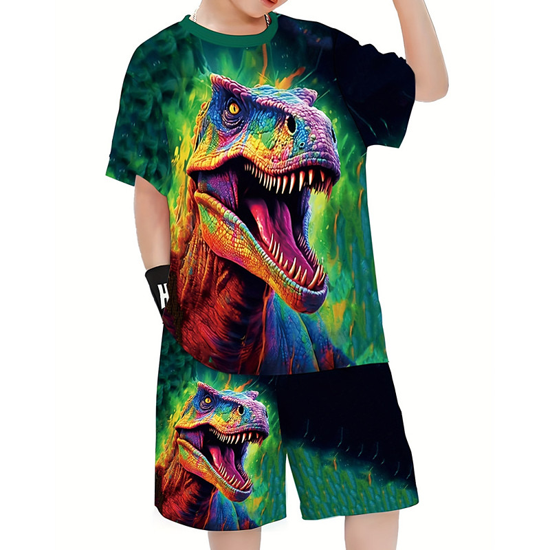 Boys 3D Dinosaur T-shirt Shorts Set Short Sleeve Summer Spring Sports Fashion Daily Kids 4-12 Years Crew Neck Outdoor Vacation Sports Tailored Fit
