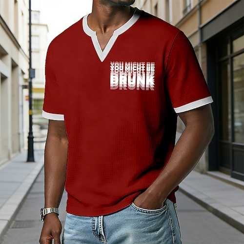 Herren-T-Shirt mit lustigem Aufdruck „Du könntest betrunken sein" – graues Waffelstrick-T-Shirt mit V-Ausschnitt und kurzen Ärmeln. Lässig, normale Passform, ideal für Bar, Club, Ausgehen und