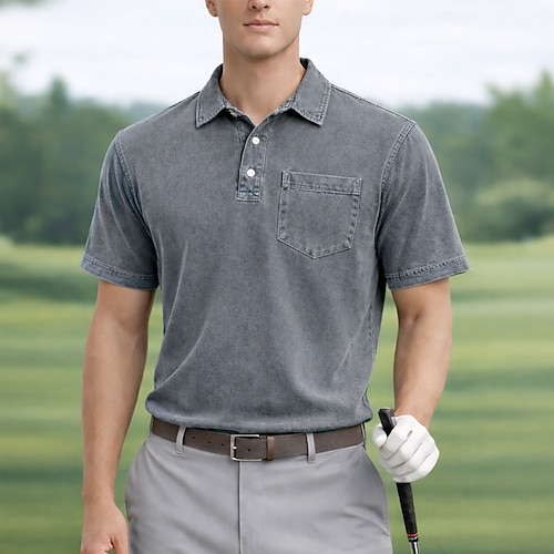 Per uomo Polo Camicia lavata con acido Casuale Sportivo Collo ripiegato Manica Corta Sport Moderno Semplice Tasca Traspirante Primavera Estate Blu Nero Rosa Blu marino Viola Verde Polo