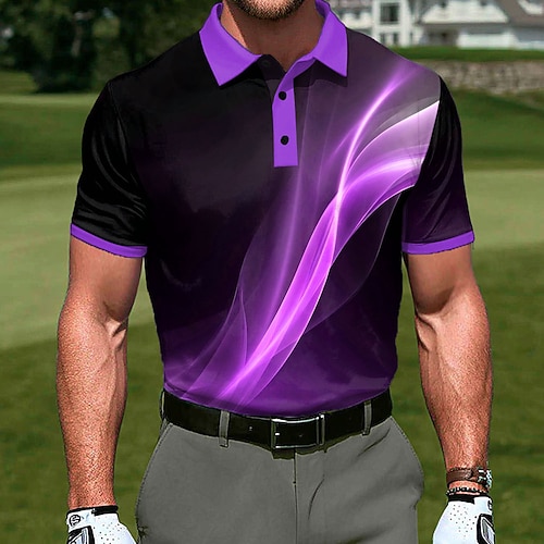 Per uomo Geometrico Golf Polo Sportivi Manica Corta Magliette polo Camicie con Colletto Casual Athleisure Bottoni Tessuto retato traspirante Primavera Estate Blu Viola Arancione