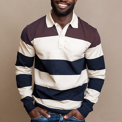 Per uomo Strisce orizzontali Polo da rugby Manica Lunga Magliette polo Camicie con Colletto Abbigliamento Sportivo Casual All'aperto Scuola Athleisure Stampa 3D Primavera Autunno Blu Marrone Verde
