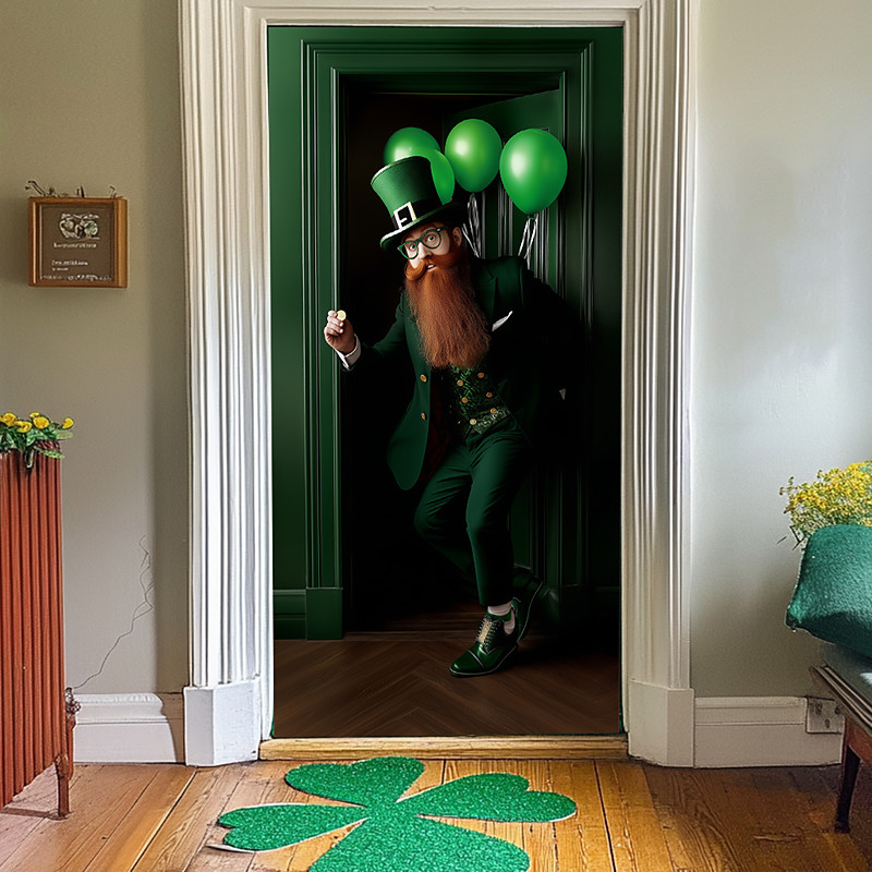 St Patrick's Day Door Curtain, Leprechaun Design, Green Irish Theme, Festive Holiday Doorway Decoration for St. Patrick's Day Celebration and Home Décor.