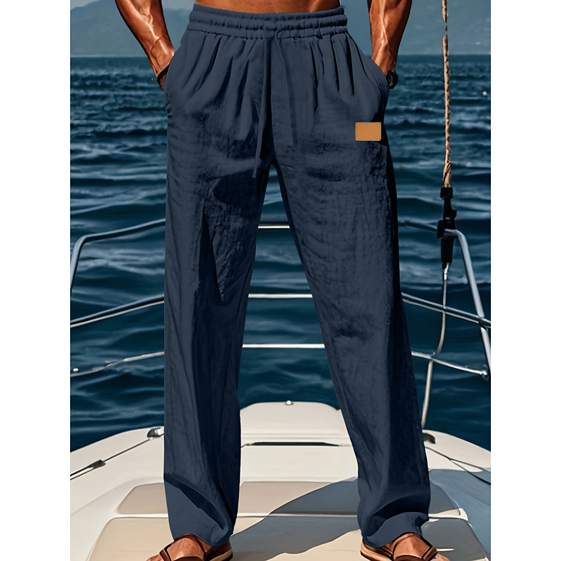 Men's Trousers Summer Pants Baggy Pants Beach Pants Elastic Waist Straight Leg Plain Comfort Breathable Full Length Casual Daily Holiday Vacation Fashion Blue Black Inelastic