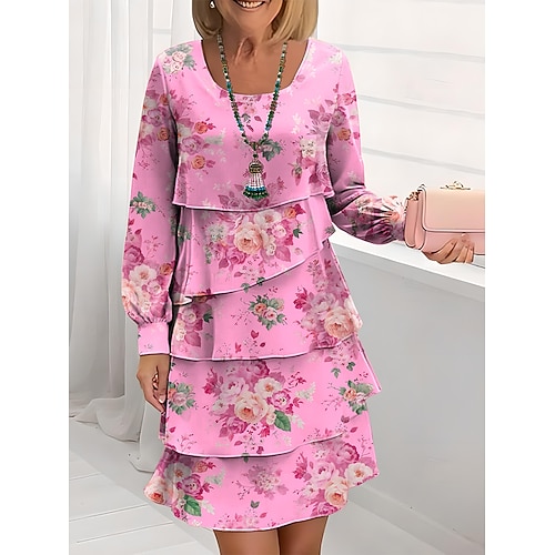 Per donna Vestito longuette Abito casual Vestito svasato Abito a fascia Abito linea A Informale Giornaliero Standard Floreale Manica lunga A V Nero Viola Verde Estate Primavera Autunno
