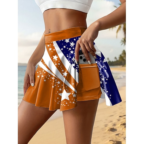 Festa dell'Indipendenza Gonna Tennis Patriottica da Donna Fashion Casual Mini Altissima Vita Gonne Grafiche Elasticizzate Quotidiane Mare Blu Rosso Viola Khaki Estate 95% Poliestere 5% Spandex