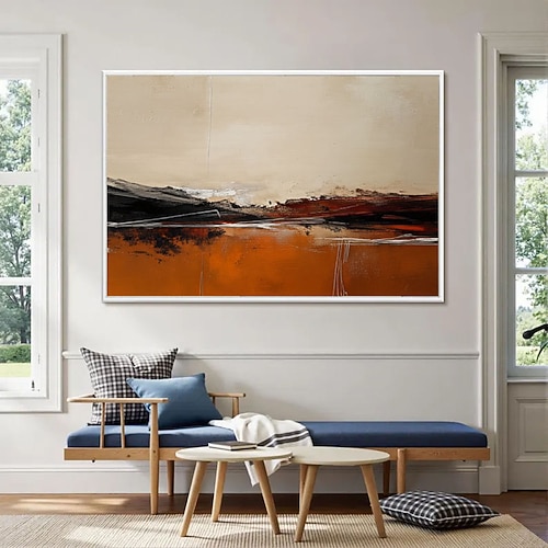 Quadro su tela, dipinto astratto fatto a mano, paesaggio marrone e nero, pittura ad olio, arte astratta marrone, decorazione murale per soggiorno, arredamento per la casa