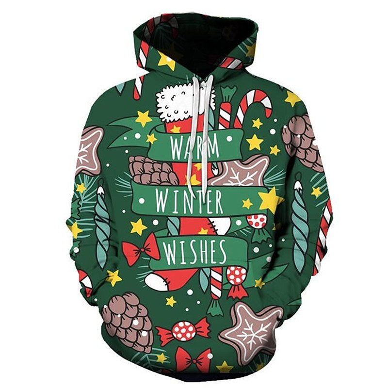 Christmas Men's Santa Claus 3D Hoodies Pullover Green Blue Royal Blue Red White Hooded Santa Claus Graphic Prints Print Daily Sports 3D Print Basic