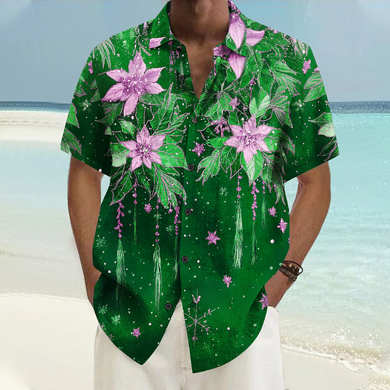 Men's Floral Flowers Summer Hawaiian Shirt Button Up Shirt Short Sleeve Hawaiian Resort Vacation Holiday Beach Wear Summer Spring Turndown 3D Print Collared Shirts Wine Blue Green