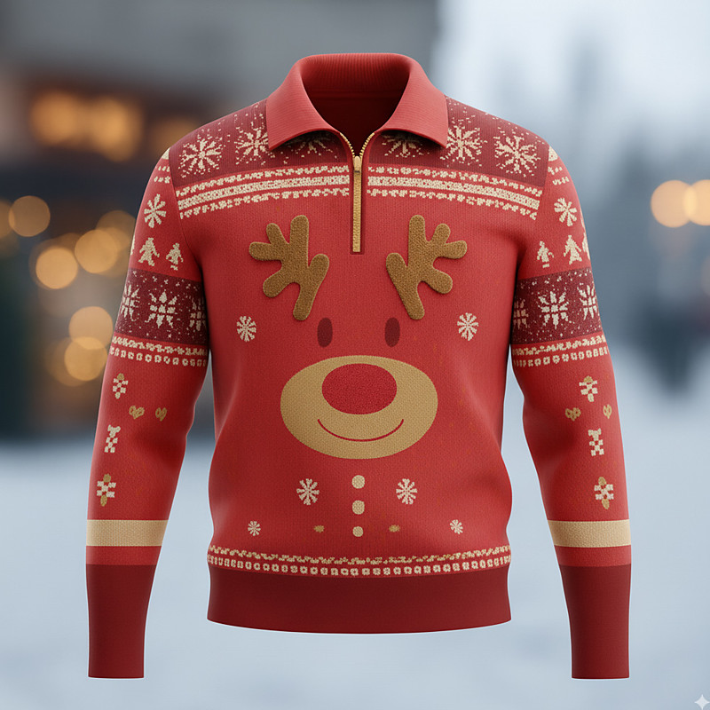 Christmas Men's Cartoon Elk Polo Long Sleeve Turndown Modern Leisure Sports Outdoor Casual Daily Zipper 3D Print Spring Fall Winter Red Green Apricot