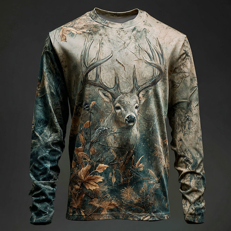 Men's Camo Deer T Shirt Long Sleeve T shirt 3D Print Crew Neck Shirt Fashion Outdoor Street Sports Outdoor Hunting Green 1# Green 2# Blue Summer Spring Clothing Apparel S M L XL XXL XXXL