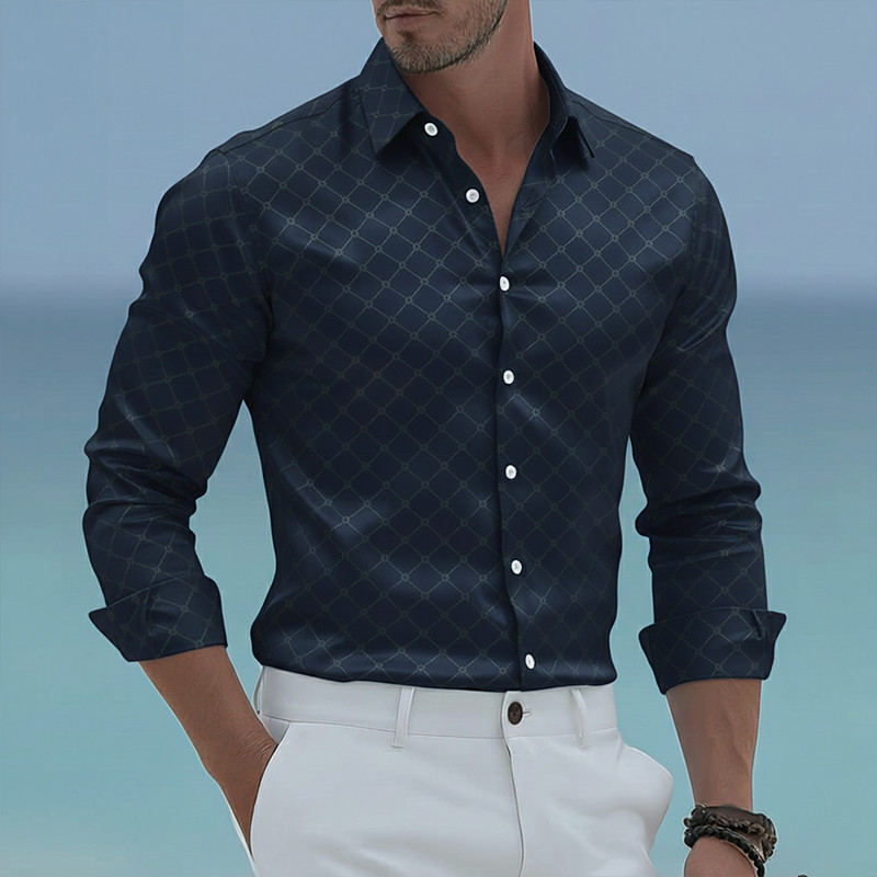 Men's Grid / Plaid Geometric Pattern Shirt Satin Shirt Dress Shirt Long Sleeve Business Casual Vacation Dailywear Summer Spring Fall Turndown 3D Print Button Up Shirts Blue Pink Purple Dark Blue