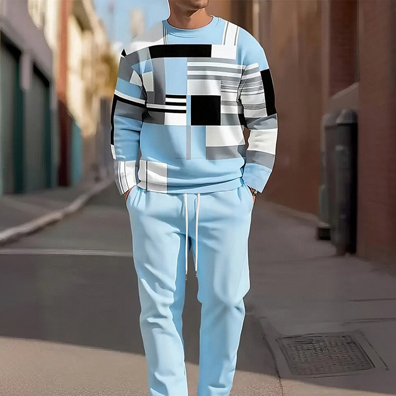 Men's Color Block 2pcs 3D Sweatshirt Sets Tracksuit Pullover Sweatshirt Long Sleeve Long pants Crew Neck Sporty Casual Daily Modern Casual Holiday 3D Print Spring Fall Winter Black Blue Red