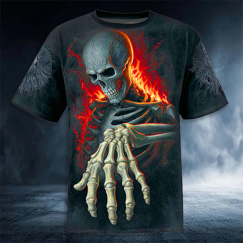 Men's Skull Flame Costumes Shirt Button Up Shirt Long Sleeve Dark Punk Gothic Style Outdoor Holiday Summer Spring Turndown 3D Print Collared Shirts Red Blue Dark Green