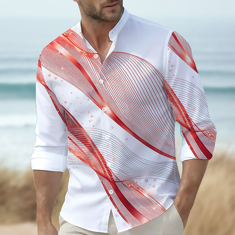 Men's Gradient Geometric Pattern Waves Shirt Stand Collar Shirt Long Sleeve Fashion Casual Dailywear Holiday Spring Fall Mandarin Collar Band Collar 3D Print Button Up Shirts Blue Yellow Red