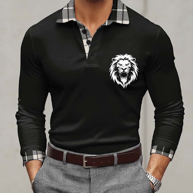 Men's Lion Polo Long Sleeve Polo Shirts Lapel Casual Outdoor Street Athleisure Daily Wear 3D Print Buttons Spring Fall Blue Black Red