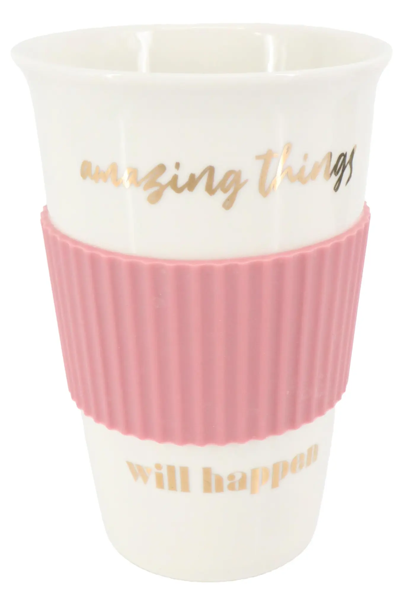 DEPOT Kaffeetasse Weiß Rosa amazing things will happen