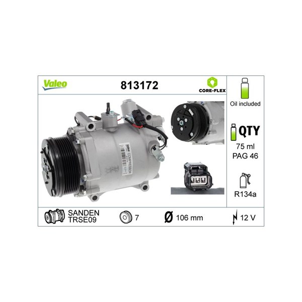 Kompressori, ilmastointilaite 12V Valeo 813172 - honda cr-v iii - OE 38800RZYA01, 38800-RZY-A01, 38810RZYA01