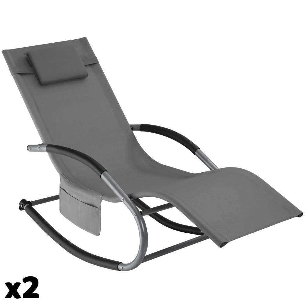 Set 2 sedie a sdraio da giardino ergonomiche a dondolo grigie