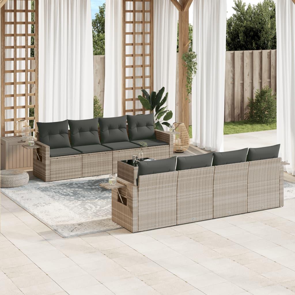 Spisebordssæt til haven 9 dele med hynder polyrattan beige