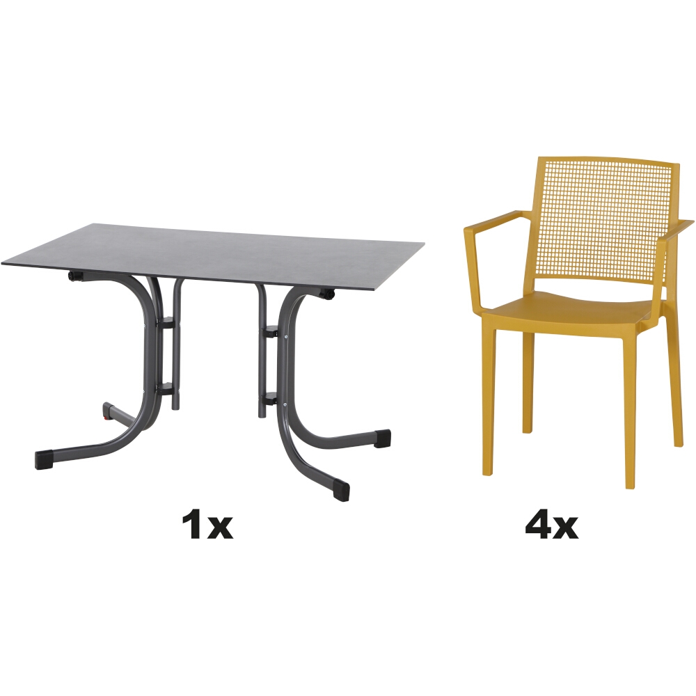SIENA GARDEN Urban Lights Set 5teilig Square Sessel gastrotauglich mustard mit Tisch Sola 120x80