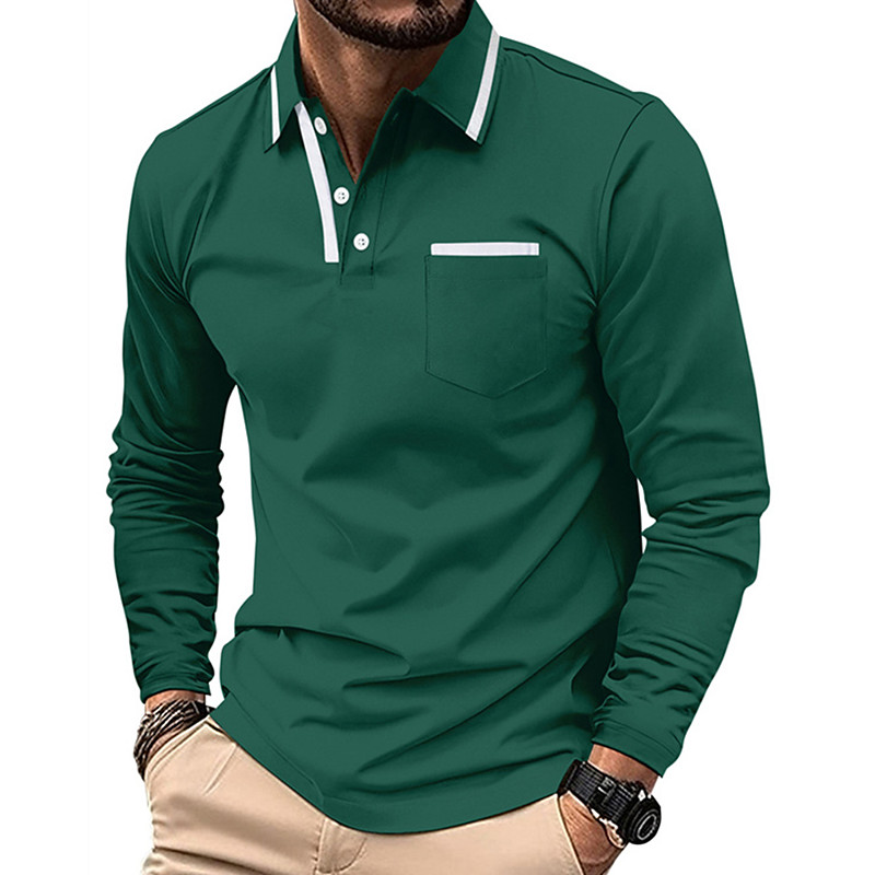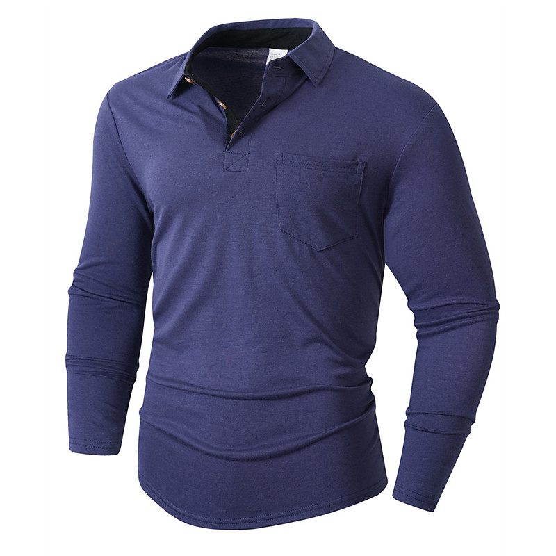 Men's Golf Shirt Golf Polos Shirts Work Casual Lapel Long Sleeve Basic Modern Color Block Pocket Buttons Spring Fall Regular Fit Black White Navy Blue Sky Blue Green Khaki Golf Shirt