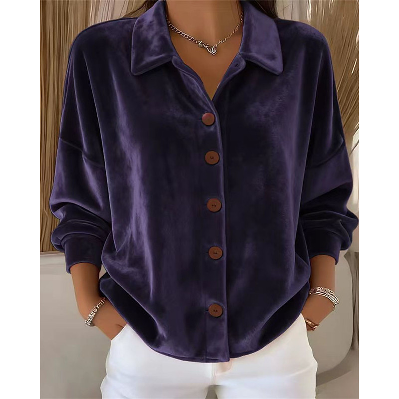 Women's Shirt Solid Color Ombre Graphic Elegant Vintage Cute Long Sleeve Crew Neck Regular Tops Work Daily Holiday Buttons Black Brown Green Spring Fall Winter Spring, Fall, Winter, Summer