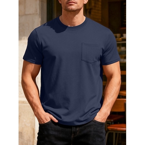 Da uomo Maglietta a Maglia Waffle Maglietta Manica Corta Girocollo Il giro Estate Tinta unica Testurizzato Moda Designer Casual Tasca Casuale Quotidiano All'aperto Blu chiaro Nero Bianco Maglietta