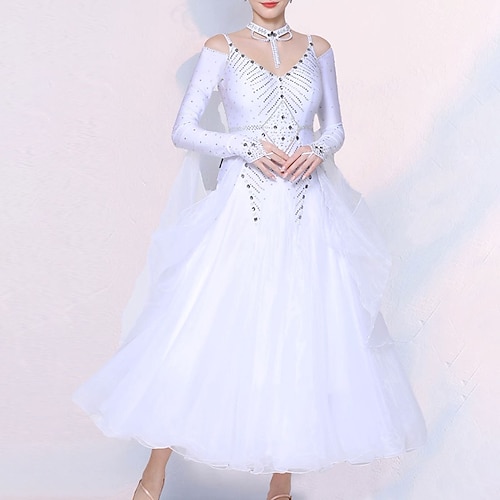 Balli da sala Abito Ricamo A fantasia Cristalli / Strass Per donna Prestazioni Feste Manica lunga Tulle Seta sintetica