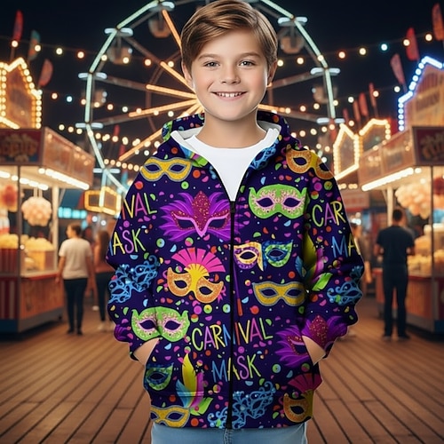 Carnevale Ragazzi 3D Grafico Maschera Martedì grasso Felpa con Cappuccio Abbigliamento Esterno Manica Lunga Stampa 3D Primavera Autunno Sport Moda Streetwear Bambini 4-12 Anni Con cappuccio Casuale