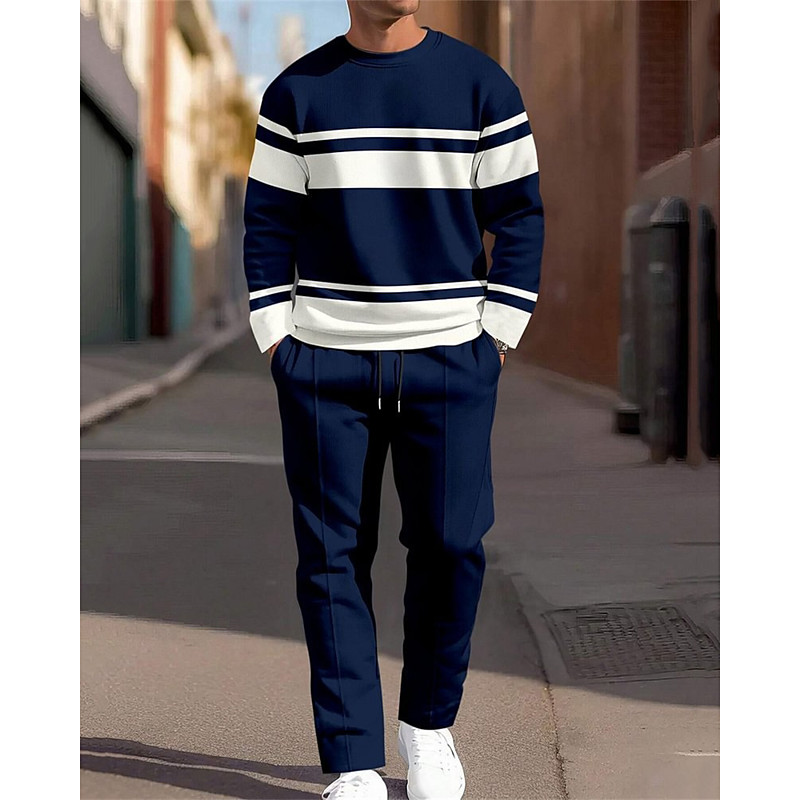 Men's 2-Piece Color Block Tracksuit - Casual Crew Neck Sweatshirt Jogger Set for Sports Streetwear Daily Wear