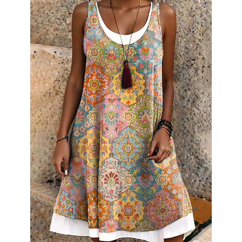 Women's Mini Dress T Shirt Dress Tee Dress Sundress A Line Dress Vacation Casual Boho Daily Loose Fit Floral Graphic Paisley Sleeveless U Neck Yellow Red Summer Spring