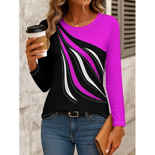 Per donna Maglietta Grafico Moda Moderno Manica Lunga Girocollo Top Regolari Quotidiano Stampato Blu Verde Grigio scuro Estate Primavera