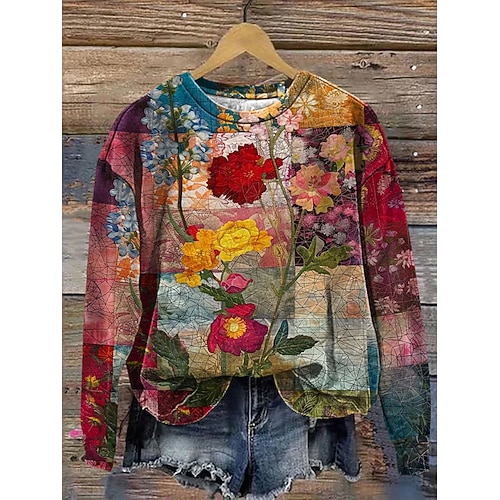 Per donna Felpa Pullover Felpe con cappuccio Floreale Grafico Moda Casual Manica Lunga Girocollo Top Regolari Streetwear Abbigliamento Quotidiano Stampato Rosso Verde Primavera Autunno Inverno